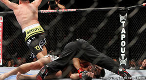 - Danny Castillo almost ended things early in his bout against Michael Johnson.� With just a minute expired, the Team Alpha Male rep plastered the TUF runner-up with a right hand, and the subsequent storm of hammerfists and the attempted head-arm choke had Johnson just struggling to stay alive.� Despite the adversity, he did survive, albeit on the bottom all the way until the end of the round.� However, Round 2 saw a dramatic turn of events similar to what had happened in Simpson/Pierce, with Johnson catching Castillo with a short left that had Castillo seeing stars.� The follow-up punches on the ground were purely academic, and Johnson was awarded the KO at 1:06 of the second round.